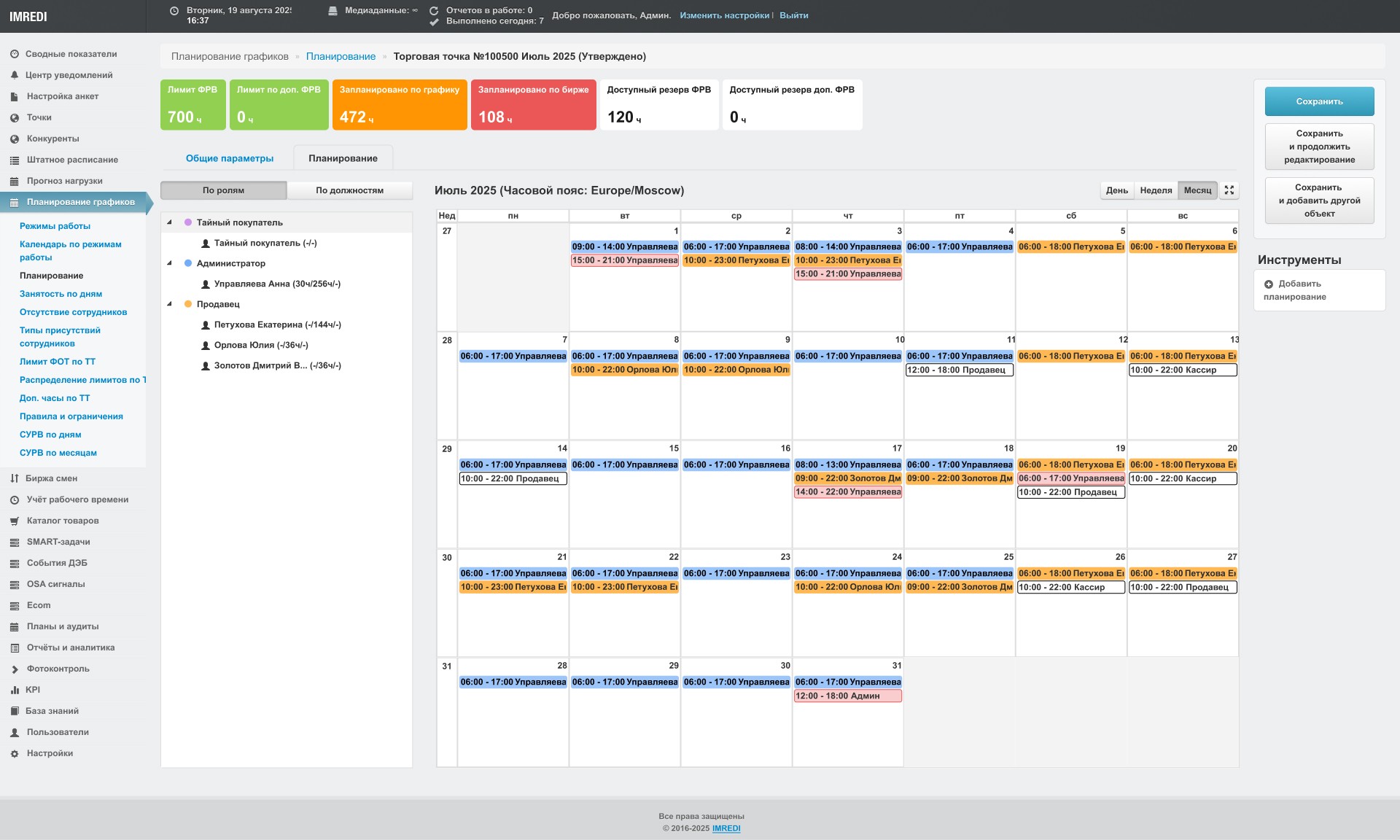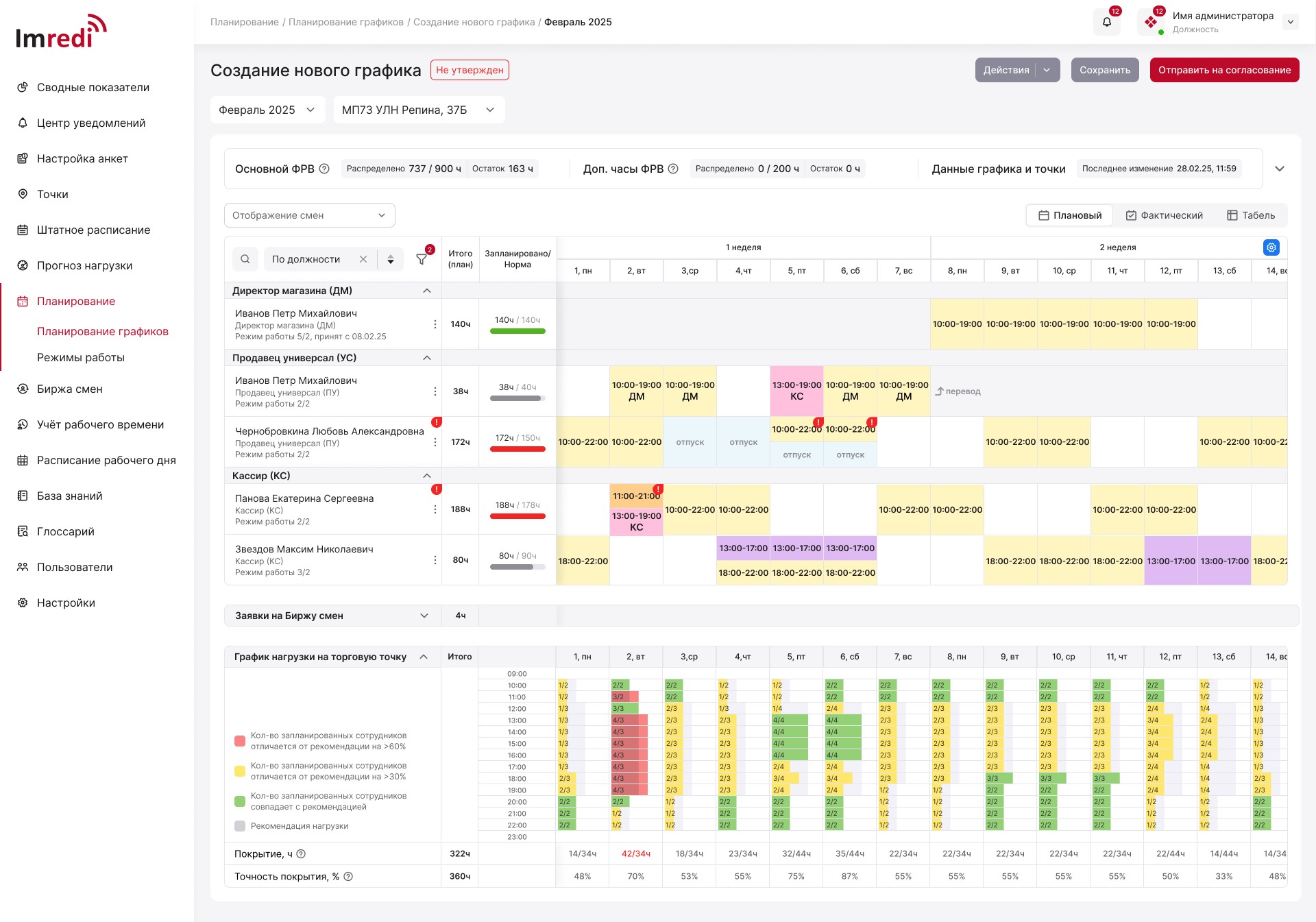 A unique feature that considers: hourly store workload, staff availability, average receipt value, and multiple other parameters.