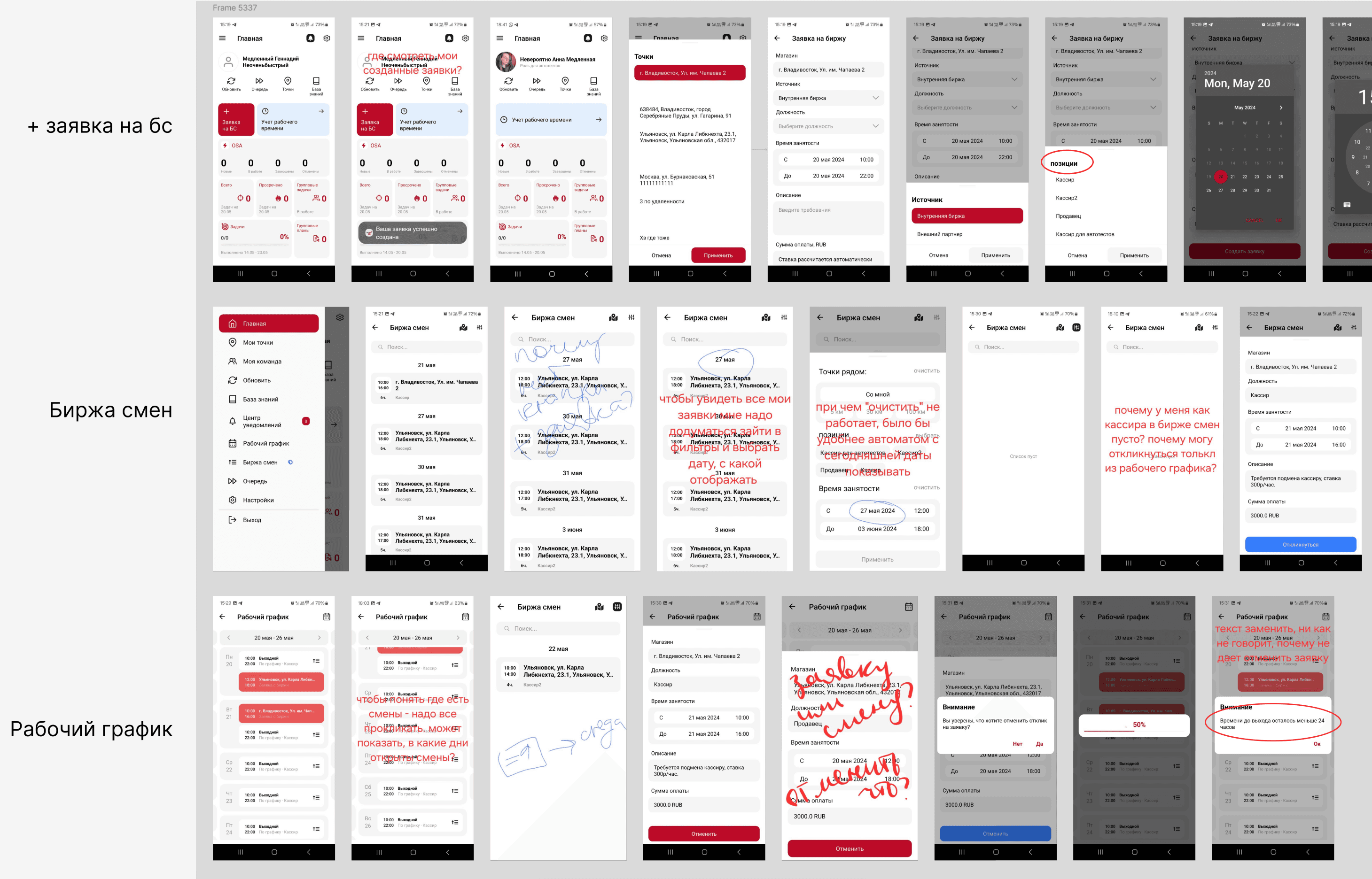 I run regular interviews with client-side managers and stakeholders to understand how they managed employees before WFM, what daily problems they faced, which features they used in similar tools, what “real work” actually looks like