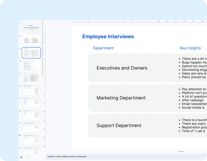 Part of the materials is under NDA. Here is what can be shown: structure, logic, approach, artifacts, and selected screens